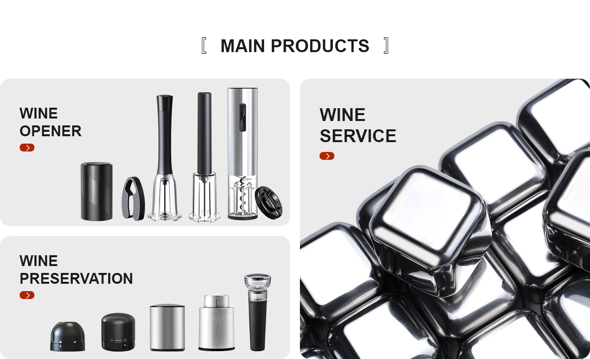 Ana ürünler:Paslanmaz çelik buz küpleri, Metal buz küpleri, paslanmaz çelik soğuk set, paslanmaz çelik şarap malzemeleri, kutu donanım